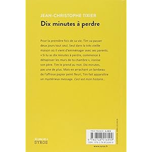 - - Dix minutes à perdre - Jean-Christophe Tixier ....Pour la première fois de sa vie, Tim va passer deux jours tout seul. Seul dans la très vieille maison où il vient d'emménager avec ses parents. " Si tu as dix minutes à perdre, commence à détapisser les murs de ta chambre ", ironise son père. Tim le prend au mot. Dix minutes, pas une de plus.
