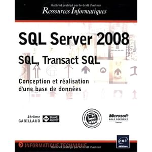 -SQL Server 2008 - SQL, Transact SQL - Conception et ....SQL Server 2008 - SQL, Transact SQL - Conception et réalisation d'une base de données. Jérôme Gabillaud. Editions ENI, 2008 - 400 pages.