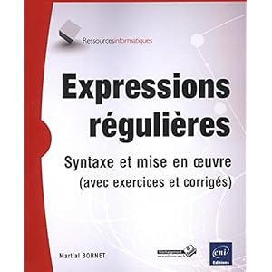-Expressions régulières Syntaxe et mise en oeuvre (avec ....Expressions régulières Syntaxe et mise en oeuvre (avec exercices et corrigés) écrit par Martial BORNET, éditeur ENI, collection Ressources Informatiques, , livre ...