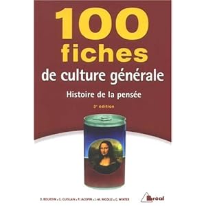-100 Fiches de culture générale. Histoire de la pensée ....Découvrez 100 Fiches de culture générale - Histoire de la pensée le livre de Dominique Bourdin sur - 3ème libraire sur Internet avec 1 million de ...