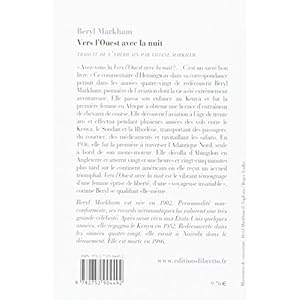 -Vers l'Ouest avec la nuit - Beryl Markham - Babelio.Critiques, citations (3), extraits de Vers l'Ouest avec la nuit de Beryl Markham. En 1900, les trains craignaient encore de s'aventurer dans la nuit,